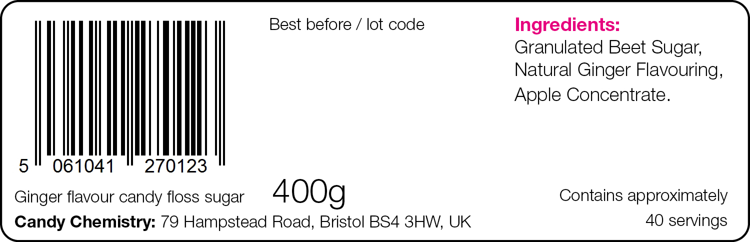 Ingredients: Granulated Beet Sugar, Natural Ginger Flavouring, Apple Concentrate